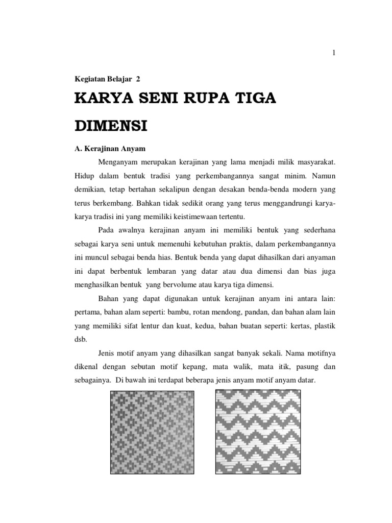 Kerajinan anyaman termasuk seni rupa terapan dua atau tiga dimensi.